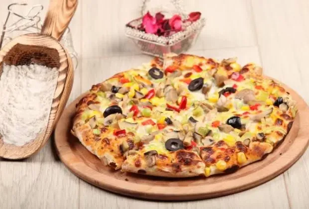 Pizza Sosu, Mozeralla, Domates, Yeşil Biber, Kırmızı Küp Biber, Siyah Zeytin, Mısır